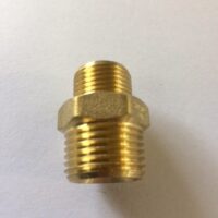 The brass reducing nipple pipe fitting has male National Pipe Taper (NPT) threaded connections. This reducing nipple fitting has one end that is smaller than the other and is used to connect two threaded pipes of different diameters. It has male NPT threads for connecting to female threaded pipes, which creates a more secure seal than straight threads.