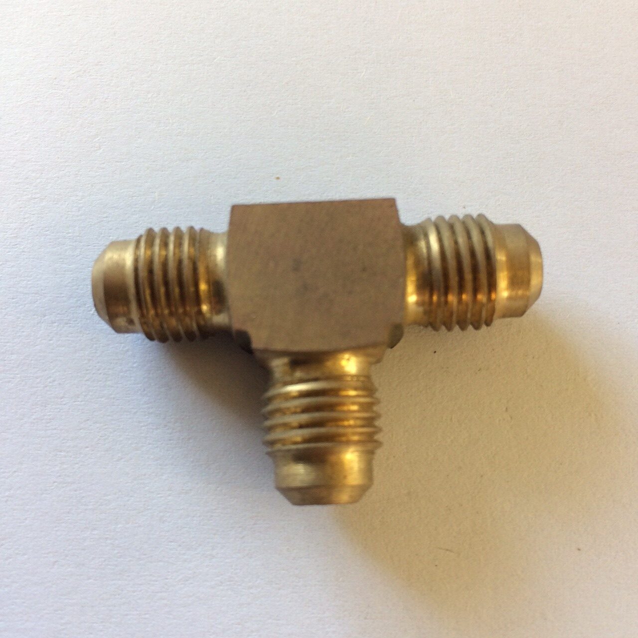 The flare tee is made of brass and is equipped with tubing connectors. This T-shaped fitting has three openings for connecting and branching three pipes, two on the main run and one at a 90-degree angle from the center of the tee. On all three flared ends, it connects to tubing. This brass fitting is corrosion resistant, ductile at high temperatures, and has low magnetic permeability.