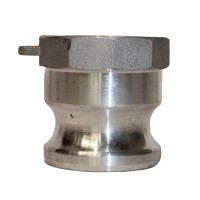 The aluminum camlock fittings type A style have a male CAM adaptor on one end and a female thread on the other. Type A is a male adaptor that can make contact with all styles that have a coupler end. Type B, C, D, DC, for example, can make contact with the hose end via a BSP, NPT, or PT thread.