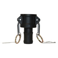 This type C camlock (Cam and Groove) fitting has a female camlock quick connect coupling on one side and a hose shank on the other. This coupler’s female camlock side will only connect to a male camlock. The hose shank side will connect to the hose.